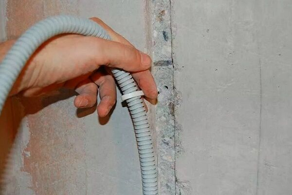 Провода лишь закрепляются в местах стыков и по протяжённости во избежание провисаний. Гофра не обеспечивает достаточную физическую безопасность и от возгорания не спасёт, основное предназначение трубы – практичность. Чтобы в случае повреждения сети, оборванный провод без труда можно было вытянуть, затем проложить новый, не трогая трубу. Ещё полезна ПВХ защита при монтаже сетей для дачных или деревянных строений, где прокладка осуществляется не внутри стены, а снаружи. И часть проводки выходит на улицу, требуя обеспечения защиты проводов от воздействий животных, птиц, сильного ветра и иных факторов.