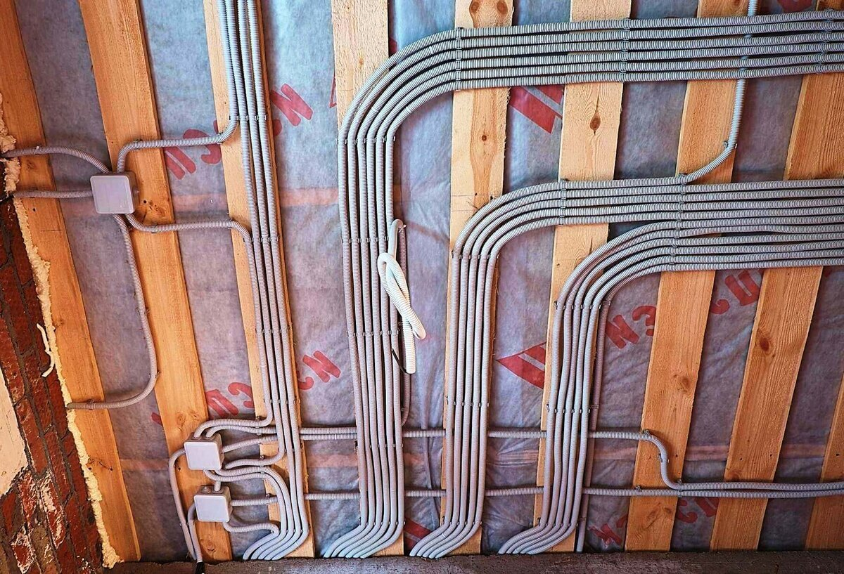 Можно проложить провода в пластиковых трубках как дополнительной защите при прокладывании тёплого пола. Чтобы, заливая бетон, строители не повредили систему. Однако от пожара систему лучше защитят пластиковые или металлические трубки вместо ПВХ гофры.